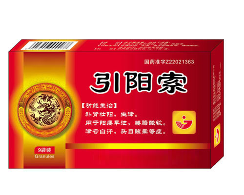 | 產(chǎn)品性能 | 補腎壯陽,生津。用于陽痿早泄,腰膝酸軟,津虧自汗,頭目眩暈等癥引陽索 5g X 9袋/盒 X 120盒/件 服用天數(shù):3天 |
