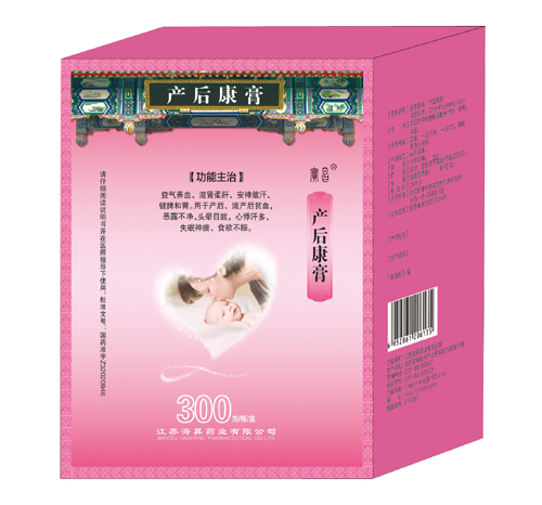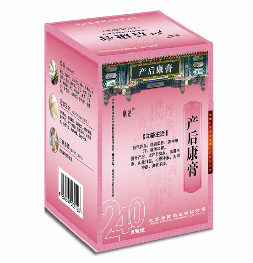 江蘇海昇藥業(yè)有限公司,擁有9條先進的中成藥生產(chǎn)線及2條食品生產(chǎn)線,處于國內(nèi)領先水平,可年產(chǎn)片劑10億片、顆粒劑4,000萬袋、膠囊劑2億粒、口服液2,500萬支、糖漿劑1,000萬瓶、酒劑500萬瓶、煎膏劑150萬瓶、外用涂膏劑100萬支。公司目前有產(chǎn)后康膏(治療產(chǎn)后流產(chǎn)貧血惡露不凈心悸失眠食欲不振)、精血補片(治療神經(jīng)衰弱精神萎靡頭暈目眩)、五妙水仙膏(治療扁平疣等皮膚贅生物)、健脾壯腰藥酒(治療腎虛腰痛食欲不佳)、參蓉健腰酒(治療腎虛骨痛兩膝無力)、參茸酒等36個中成藥品種,42個批準文號。已在甘肅、宜興等地建成標準GAP藥材種植基地。