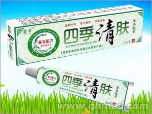 四季清膚草本乳膏【產(chǎn)品名稱】【批準文號】贛衛(wèi)消證字(2011)第0422號【產(chǎn)品規(guī)格】鋁管包裝,15g/支【用法用量】外用,取適量本品涂于患處,每天2-3次。【藥品成分】本品采用28味純野生藥材:狼毒、土槿皮、苦參、蛇床子、地膚子、白蘚皮、黃柏、皂角刺、獨角蓮、百部、土伏苓、七星劍、鐵冬青、冰片 、薄荷腦等。