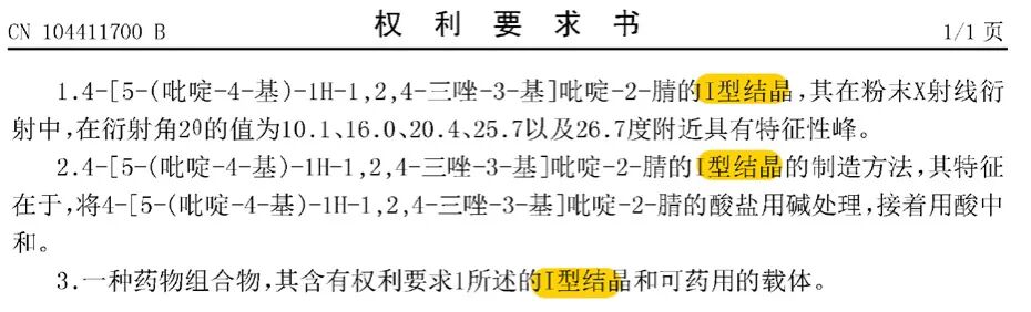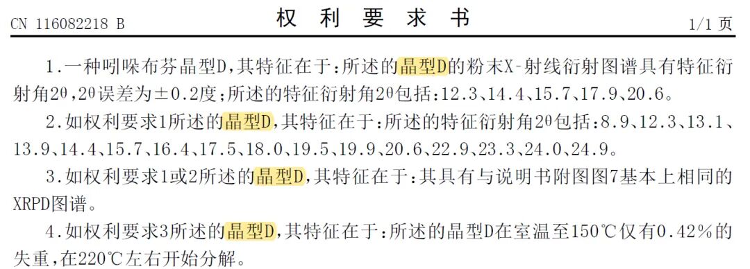 該專利共有4個(gè)晶型權(quán)利要求,逐層遞進(jìn):
