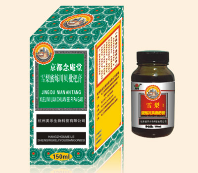 【產(chǎn)品說明】:主要原料:雪梨、川貝母、枇杷、北沙參、桔梗、苦杏仁、百合、薄荷腦、液體葡萄糖、天...