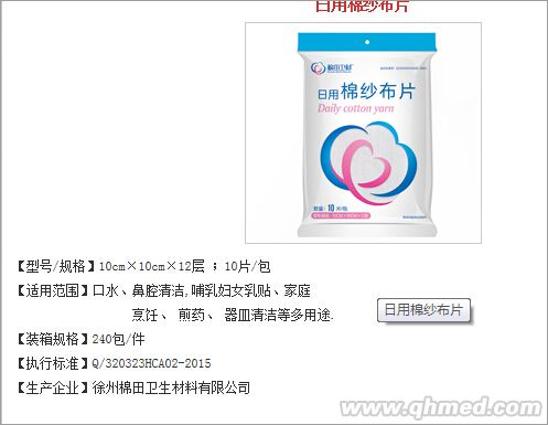 | 企業(yè)名稱:徐州棉田衛(wèi)生材料有限公司 | 聯(lián) 系 人:只有vip會(huì)員可用 |